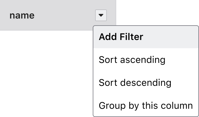 The user clicks the header of one of the columns in the table. A menu becomes visible, and they choose to add a filter to this column.