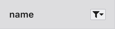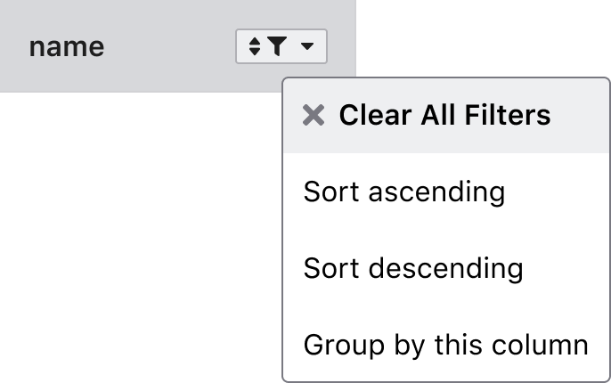 In the header area of each table, there are column-specific options in each header cell. Users can access the options by clicking on the buttons. The button content will vary depending on the column status. For example, if a filter is applied, the filter icon will become visible.
