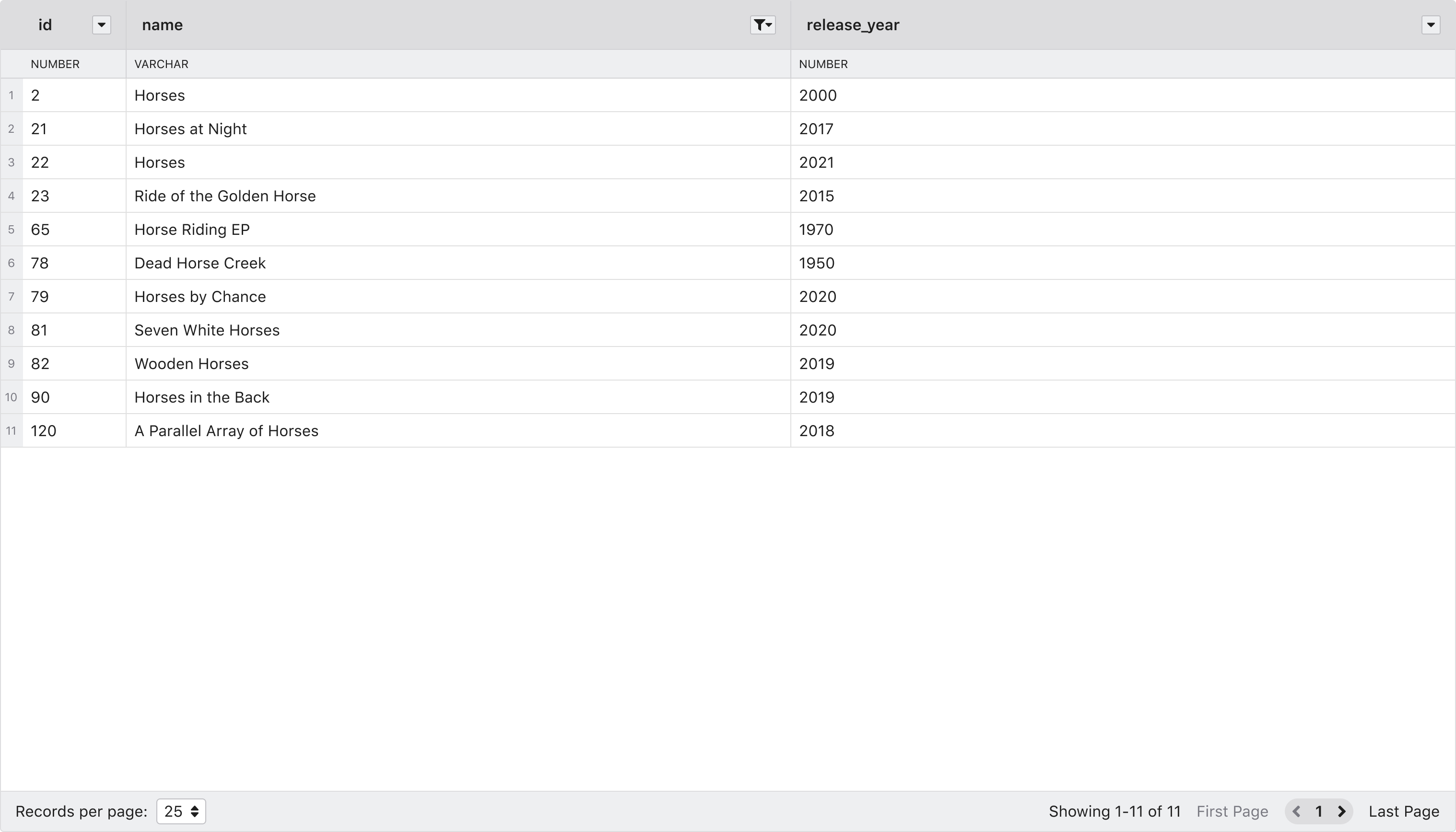 The user now adds a value to the filter, and the table refreshes to show the result. No additional step is required from the user to trigger the table refresh. The value is case-insensitive.